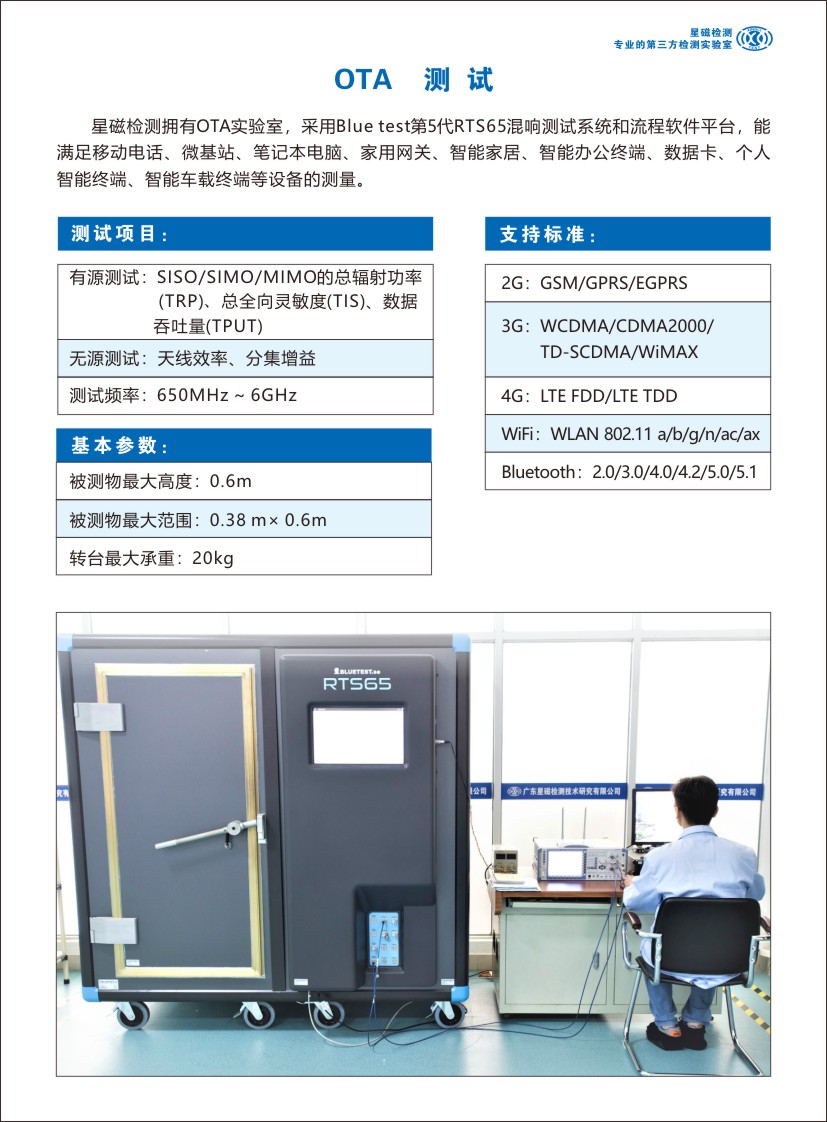 • 可测试设备:移动电话、微基站、笔记本电脑、家用网关、智能家居、智能办公终端、数据卡、个人智能终端、智能车载终端等设备